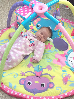 Makenna is 5 months old!! i cant believe it! She has grown so much in the last couple months. This is an update from months 3-5. Its been so fun watching her grow up into a cute baby girl and out of the newborn stage! going through all her newborn clothes was kinda sad im not gonna lie, but its so exciting to watch her learn new things everyday. in the last couple months she has learned to roll over both ways. sometimes she forgets she knows how or cant figure out how to move her arms to let herself roll over. but she is getting better at it. she loves to be on her tummy and hold her head up. she is getting so good at grabbing her toys and wants to grab and suck on anything she can get her hands on. i remember when she couldn’t even hardly reach some toys on her play yard and now she grab them all and pull and push her self around. we have a saucer she loves to sit and play. i can normally put her down to play and she will be entertained until she is tired or hungry. She still LOVES bath time and now she is so wiggly and splashes i love it! we go to the water park pretty often and she does really good, i can tell she loves the water but not quite sure what to do. Breastfeeding is still going good, she is a good eater and it seems like she is getting enough....there are rolls to prove it. we weighed her at home and she was 15lbs!! Makenna loves to sit up and see whats going on. she can almost sit up by herself but not quite there yet. normally she is a pretty good sleeper, but we just got back from camping last week and this week i dont know if her schedule is just off or she got used to sleeping with me in the camper. but either way this week has not been good! most nights she will go to bed around 8 ish and sleep 5-6 hrs and every 3-4ish hrs after that. summer is just so crazy and we are out late all the time so shes learning to adapt. if she’s tired i can lay her down anywhere and she will sleep but has a harder time if she is cuddled or held. im glad she likes her bed but sometimes i wish she would fall asleep in my arms. she does good with dad and sleeps when he holds her. right when you think you have them figured out it changes. She still gets to play with grandma nelson thursday and friday and with daddy saturdays. this last saturday she got to spend the morning at football practice and help daddy set up his class room. She loved it and all the boys loved her! Makenna is a chatter box, oh my goodness. she has alot to say and is starting to mimic the sounds we make to her.